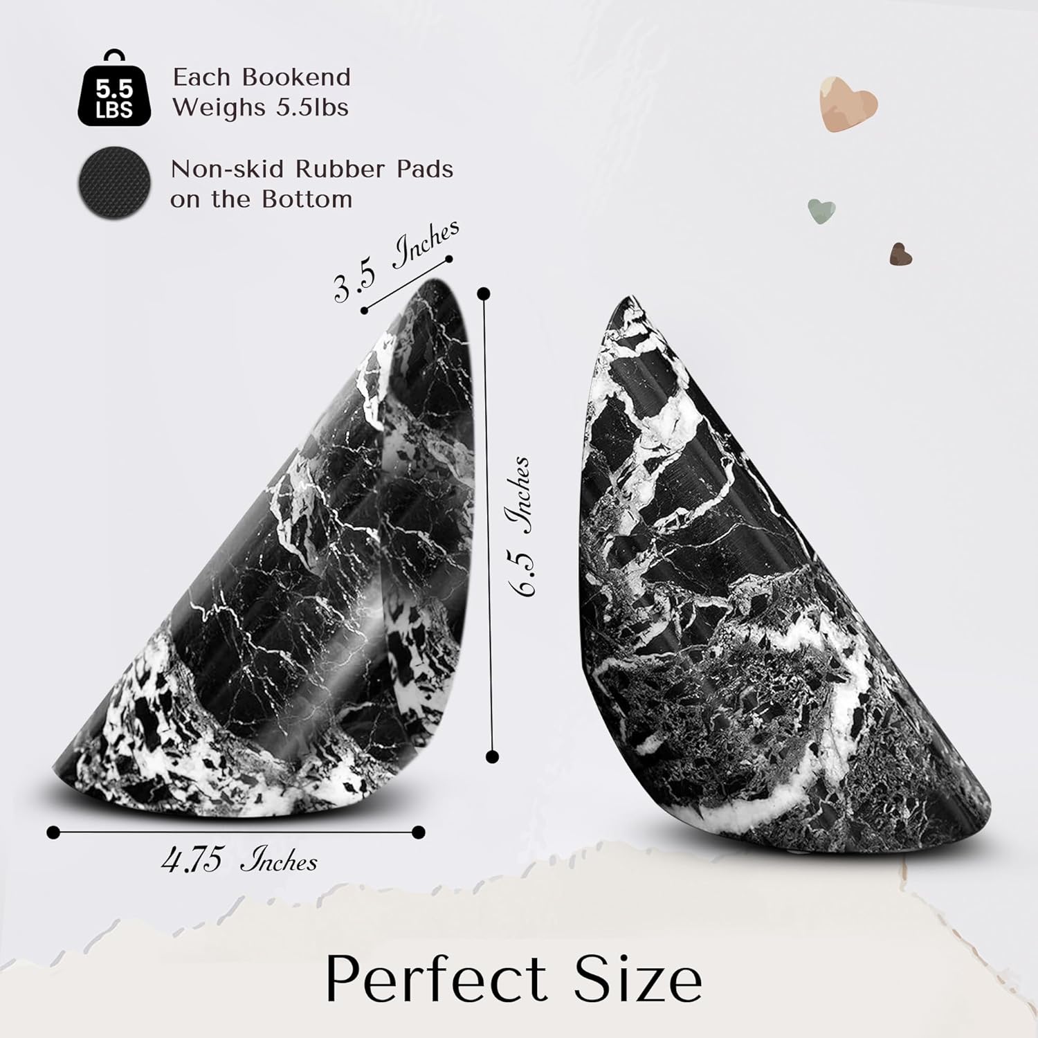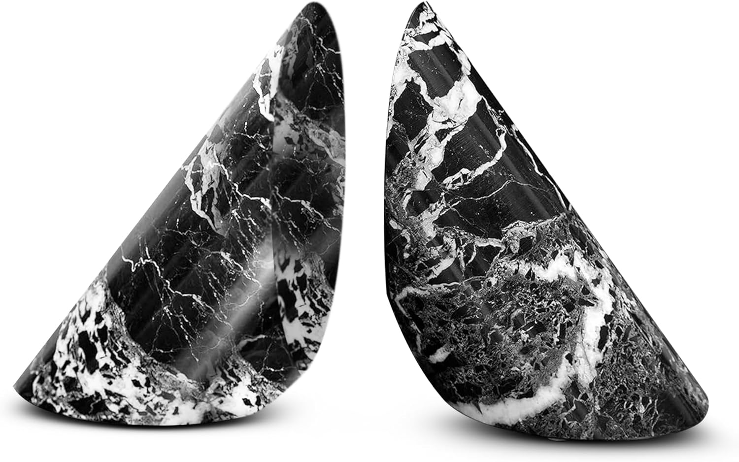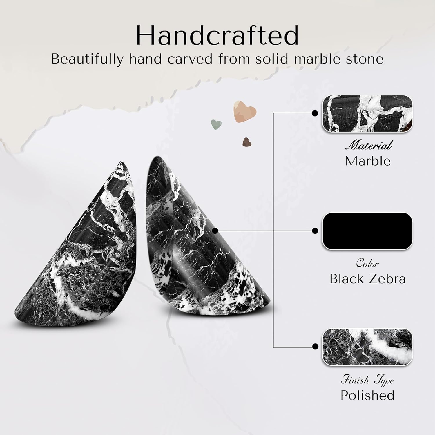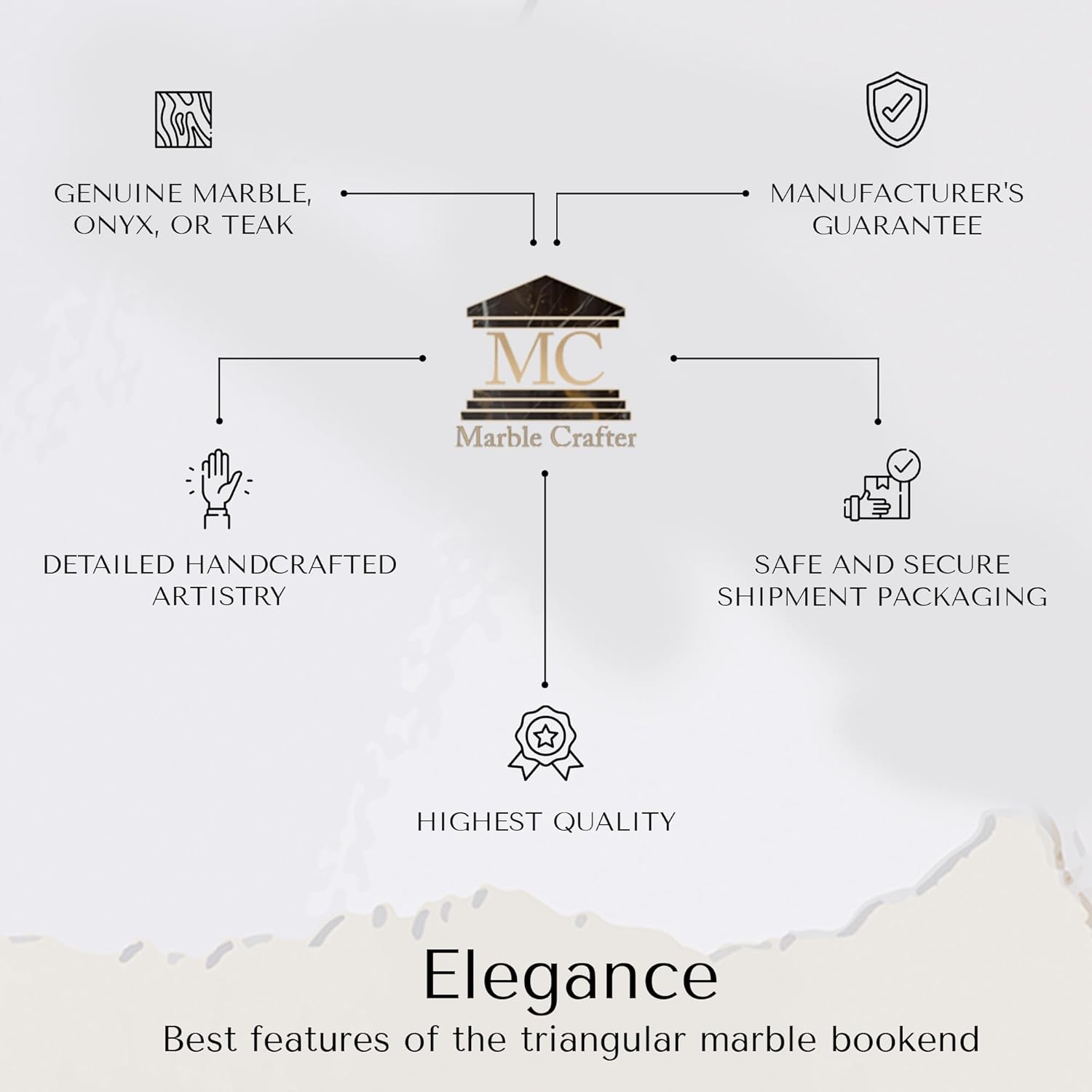 Designs by Marble Crafters Marble Cylindrical Bookends for Heavy Books Set: Our sleek, modern book ends set is a blend of timeless elegance and modern functionality. Crafted from solid marble stone, these 6.5” H x 3” W x 4.75” D geometric bookends, showcase a design that seamlessly integrates into contemporary interiors. Each marble bookend is meticulously hand-carved and polished to achieve a high gloss finish, accentuating its natural beauty. Designed to withstand the weight of heavy hardcover books, our heavy bookends boast a substantial 10-pound weight, ensuring stability and security for your literary treasures. The non-slip rubber base at the bottom of our bookends provides additional grip, safeguarding your surfaces from scratches and slippage. Embrace the uniqueness of natural marble with each cool bookend set, as variations in color and pattern make every pair of unique book ends distinctively one-of-a-kind. Built to last, these durable decorative book ends for shelves promise longevity and durability. Beyond their primary function, our versatile heavy duty bookends for heavy books offer endless possibilities. Whether organizing DVDs, vinyl records, folders or simply serving as decorative accents, this desk decor set effortlessly elevates any space while maximizing functionality. – About Us: A crafting trait only passed from one generation to the next, is the skill of master craftsmen at Marble Crafters. The artifacts offered are the product of such dedication in craftsmanship combined with the vivaciousness of the marble stone in an assortment of colors. These natural stones are dug from the hearts of mountains, river belts, the beds of Arabian Sea, northwest of the Indian Ocean, and the valleys of Himalayas. These hard rocks are turned into finely polished masterpieces in a spectrum of bright whites and neutral beige to the darkest browns and jet blacks including several natural mixes and color combinations in between.