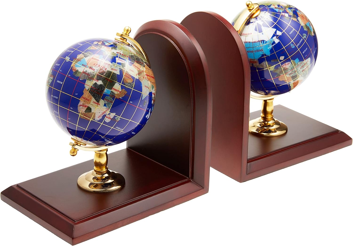 Unique Art 7-Inch Tall Pair of Blue Lapis Ocean Gemstone World Globe Bookends